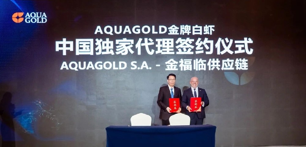 2025年1月10日,厄瓜多尔全新白虾品牌Aquagold(金牌)在天津金福临大厦隆重举行品牌推介晚宴,标志着厄瓜多尔第三大养殖企业的白虾产品正式进军中国市场。Aquagold(金牌)品牌由四大虾农联合投资5200万美元打造,拥有9000公顷的虾场,并与厄瓜多尔第三大饲料公司Copacigulf深度合作,从源头上保障了虾原料的稳定供应和质量